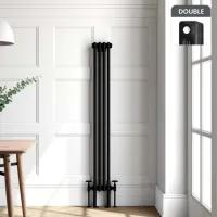 Athens Matt Black Double Column Vertical Traditional Radiator 1500x200mm