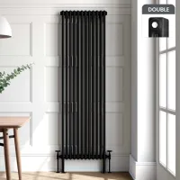 Athens Matt Black Double Column Vertical Traditional Radiator 1800x560mm