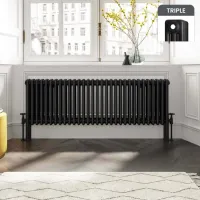 Athens Matt Black Triple Column Horizontal Traditional Radiator 450x1415mm
