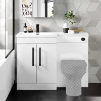 Avon Gloss White Basin Vanity and Back To Wall Unit 1100mm - Black Accents - Left Handed