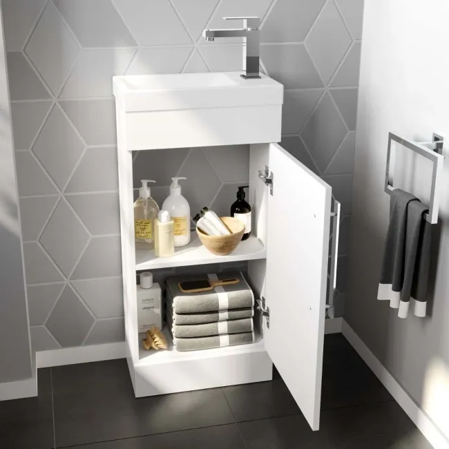 Avon Gloss White Cloakroom Floor Standing Basin Vanity 400mm