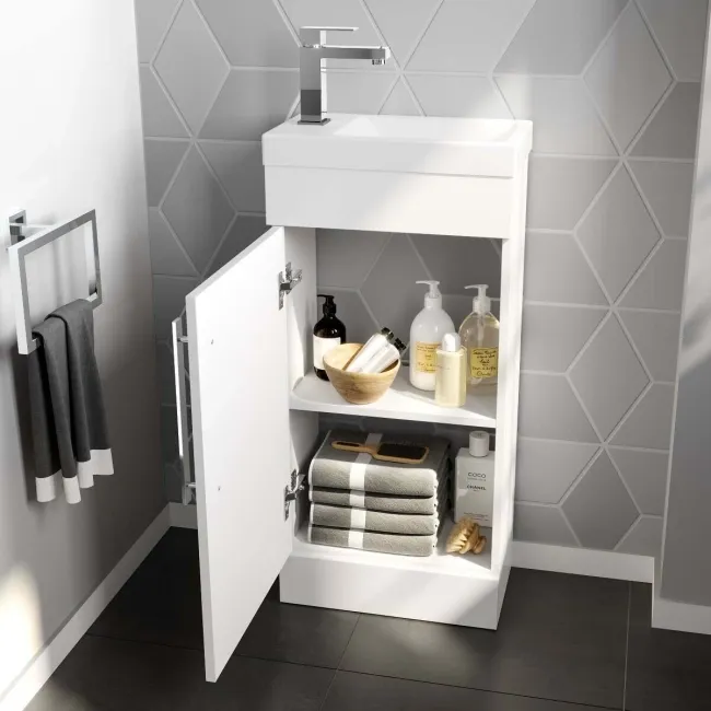 Avon Gloss White Cloakroom Floor Standing Basin Vanity 400mm and Toilet Set