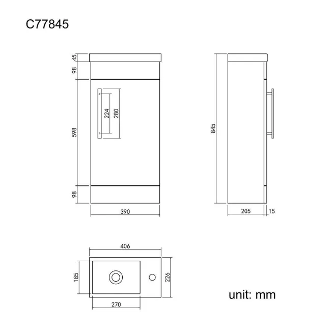 Avon Gloss White Cloakroom Floor Standing Basin Vanity 400mm - Black Accents