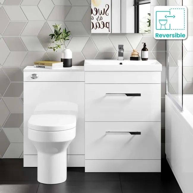 Avon Gloss White Combination Basin Drawer and Miami Toilet 1100mm