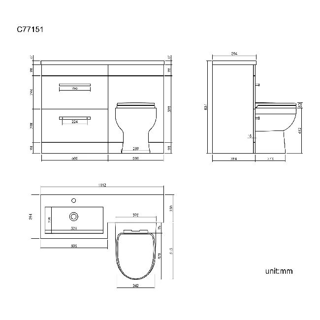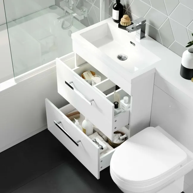 Avon Gloss White Combination Basin Drawer and Aruba Toilet 1100mm - Left Handed