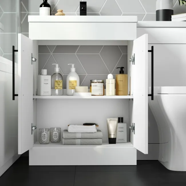 Avon Gloss White Combination Vanity Basin and Atlanta Toilet 1100mm - Black Accents - Left Handed