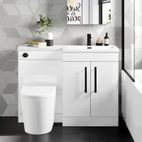 Avon Gloss White Combination Vanity Basin and Boston Toilet 1100mm - Black Accents - Right Handed