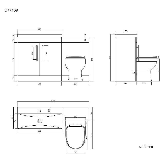 Avon Gloss White Combination Vanity Basin and Aruba Toilet 1300mm