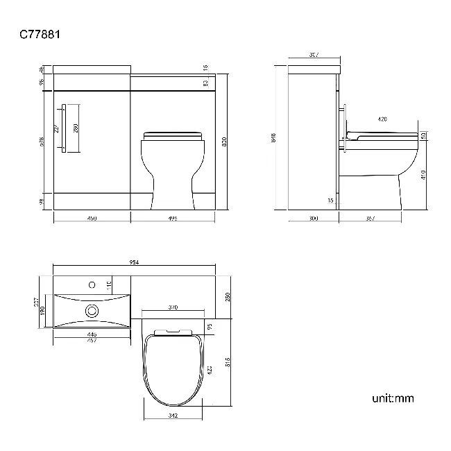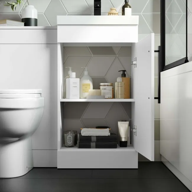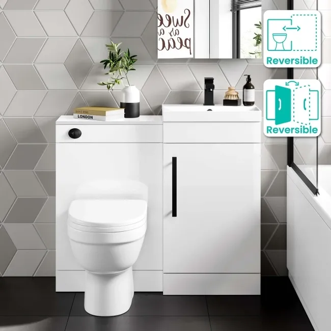 Avon Gloss White Combination Vanity Basin and Aruba Toilet 950mm - Black Accents