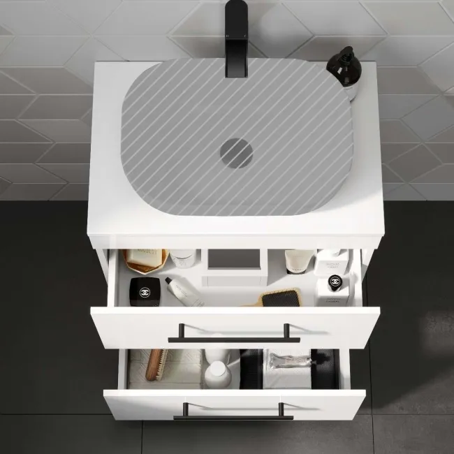 Avon Gloss White Counter Top Drawer Vanity 600mm - Black Accents