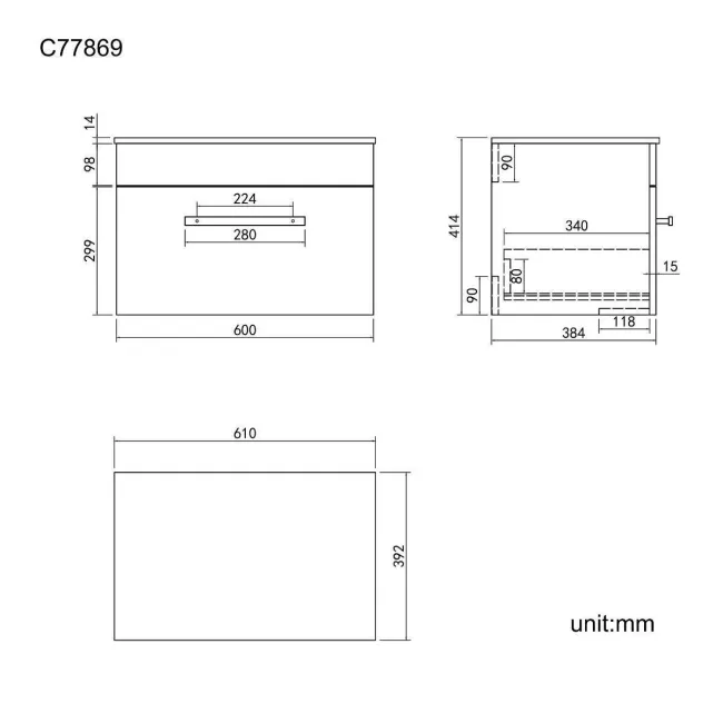 Avon Gloss White Wall Hung Counter Top Vanity with Marble Top 600mm - Black Accents