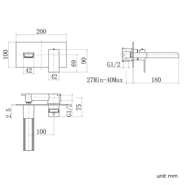 Avon Matt Black Waterfall Wall Mounted Basin Mixer Tap