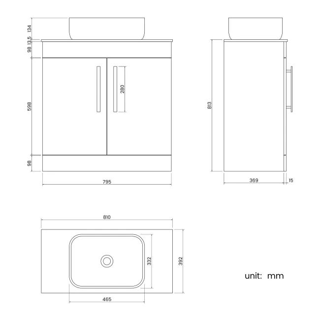 Avon Stone Grey Vanity with Marble Top & Curved Counter Top Basin 800mm