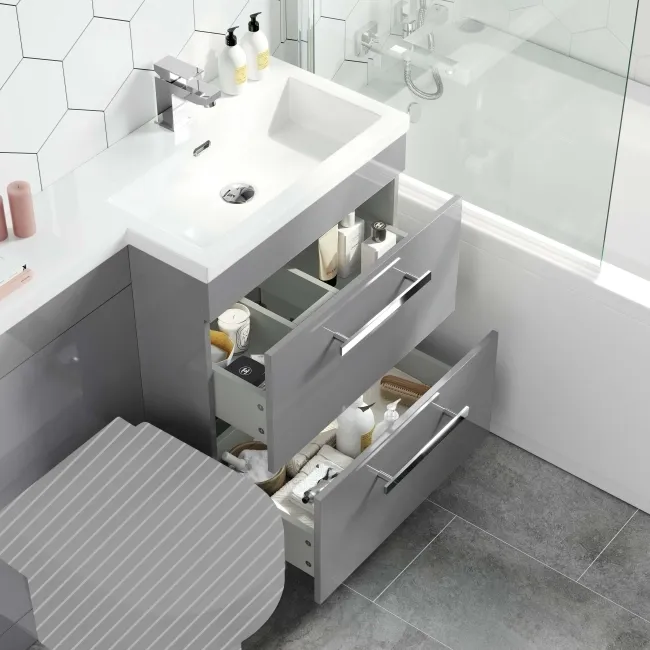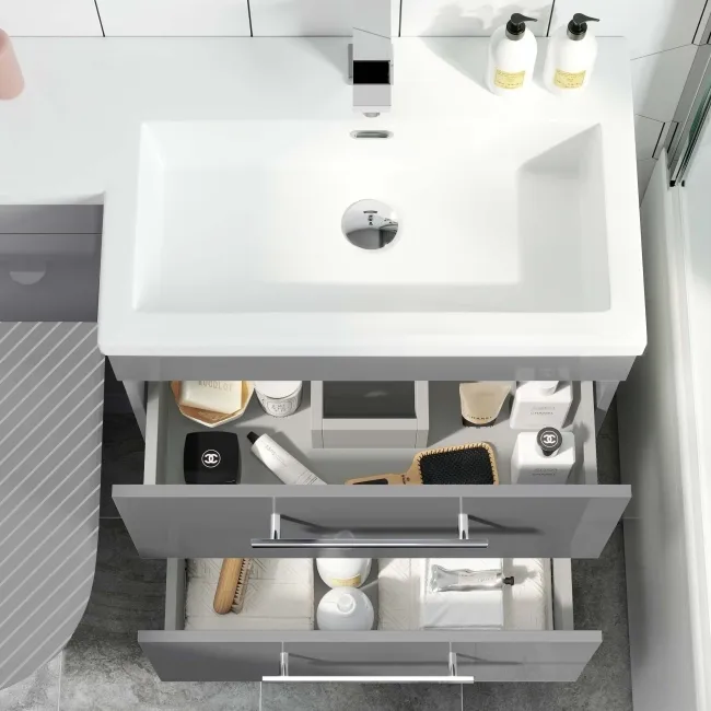 Avon Stone Grey Basin Vanity Drawer and Back To Wall Unit 1100mm - Right Handed