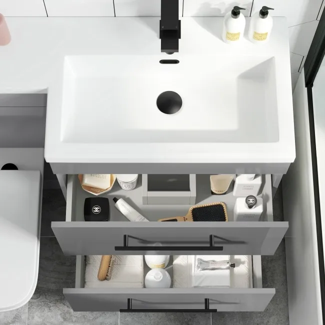 Avon Stone Grey Combination Basin Drawer and Atlanta Toilet 1100mm - Black Accents - Right Handed