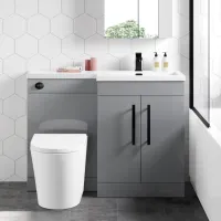 Avon Stone Grey Combination Vanity Basin and Boston Toilet 1100mm - Black Accents - Right Handed