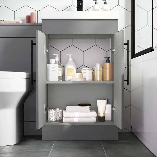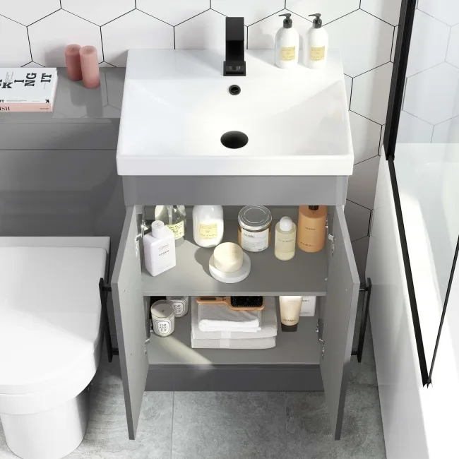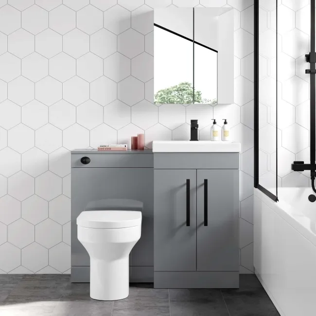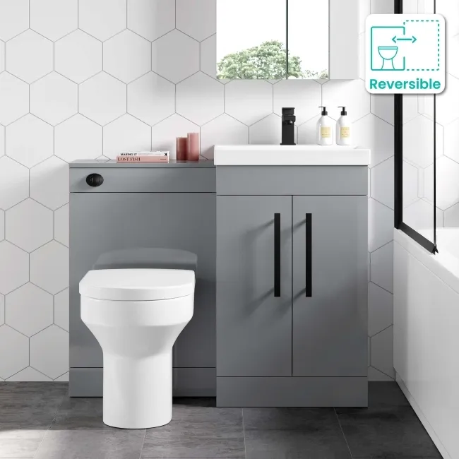 Avon Stone Grey Combination Vanity Basin and Miami Toilet 1000mm - Black Accents