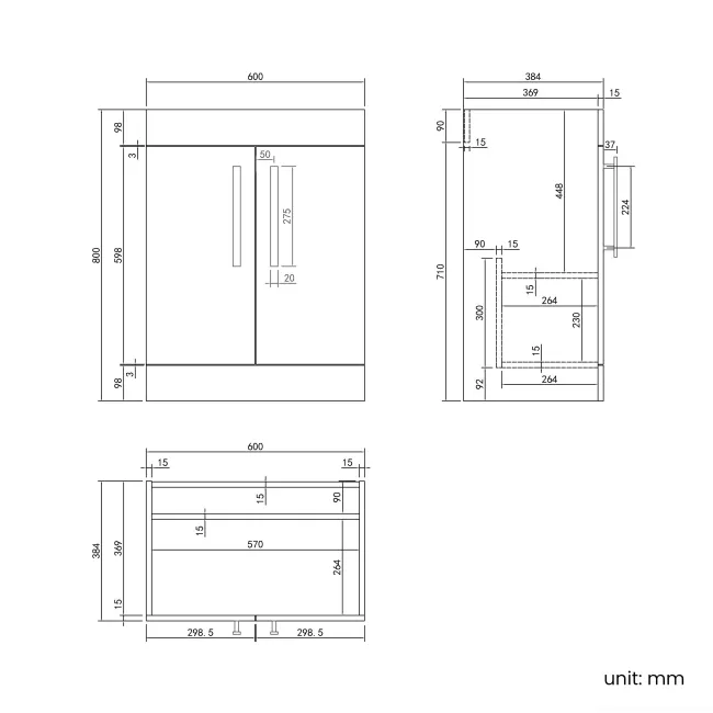Avon Stone Grey Combination Vanity Basin and Miami Toilet 1100mm - Black Accents