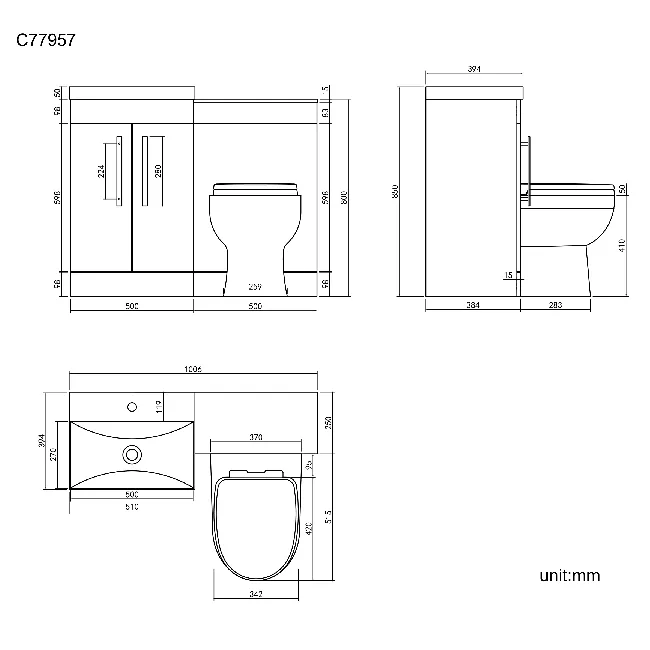 Avon Stone Grey Combination Vanity Basin and Aruba Toilet 1000mm - Black Accents