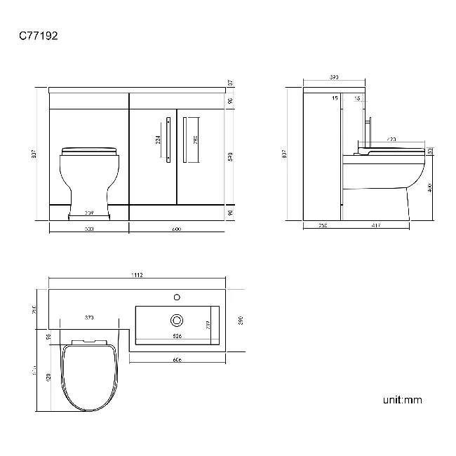Avon Stone Grey Combination Vanity Basin and Aruba Toilet 1100mm - Right Handed