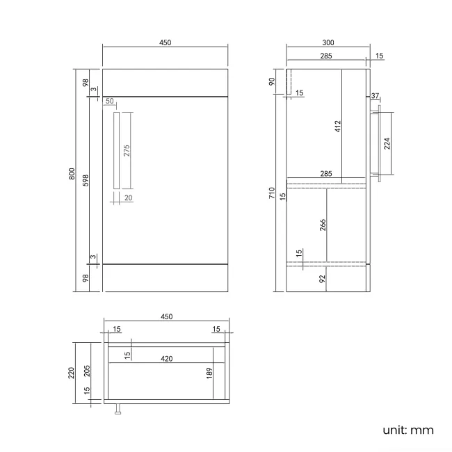 Avon Stone Grey Combination Vanity Basin and Aruba Toilet 950mm