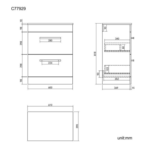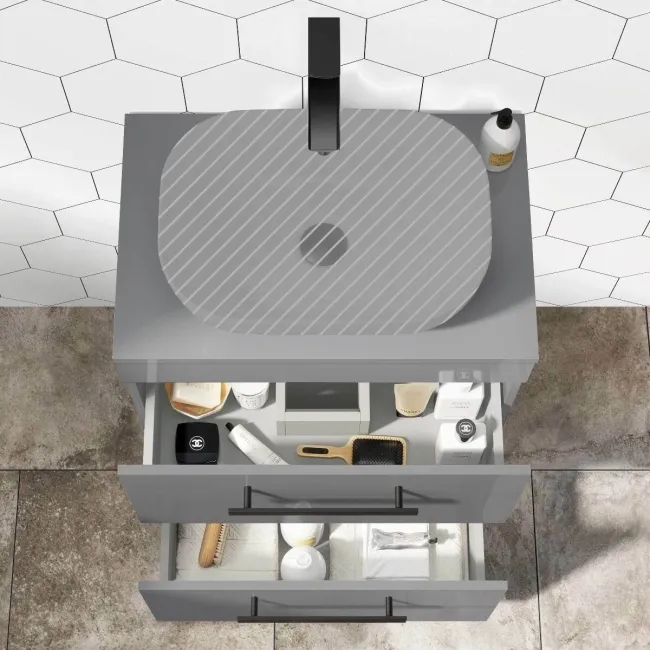 Avon Stone Grey Counter Top Drawer Vanity 600mm - Black Accents