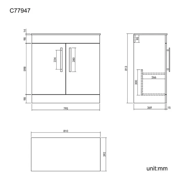 Avon Stone Grey Counter Top Vanity with Marble Top 800mm - Black Accents