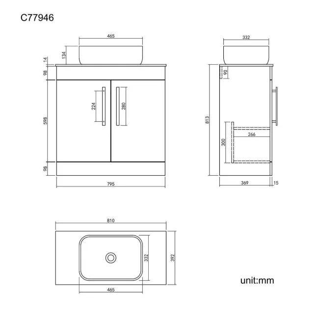 Avon Stone Grey Vanity with Marble Top & Curved Counter Top Basin 800mm - Black Accents
