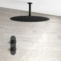 Ballina Premium Ceiling Matt Black Round Thermostatic Shower Set - 400mm Head