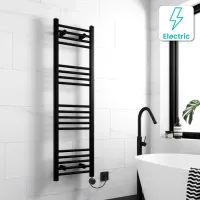 Barcelona Electric Matt Black Straight Heated Towel Rail 1400x400mm