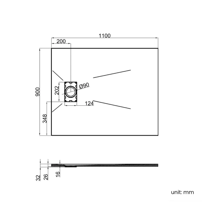 Berlin Rectangular Matt White Slate Effect SMC Composite Shower Tray 1100x900mm