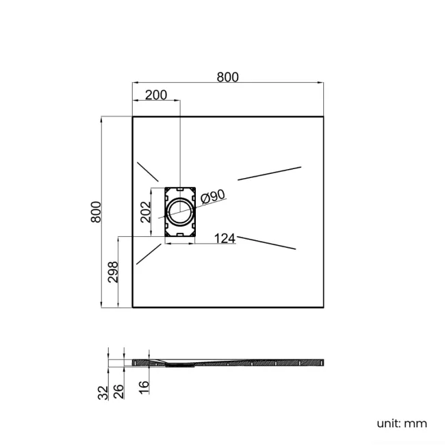 Berlin Square Matt Black Slate Effect SMC Composite Shower Tray 800x800mm