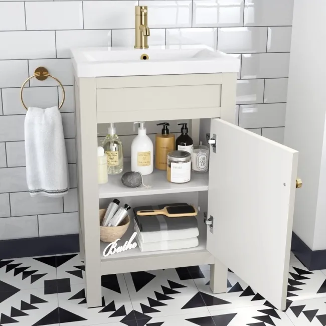 Bermuda Chalk White Basin Vanity 500mm - Brushed Brass Accents