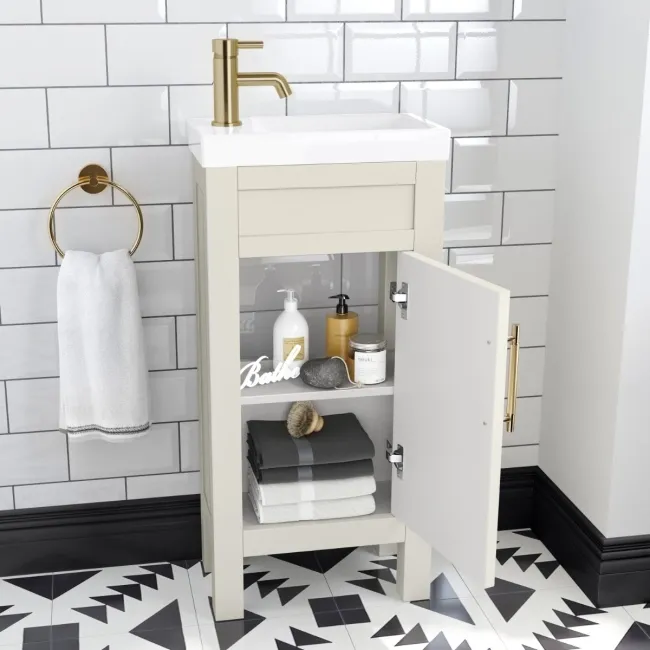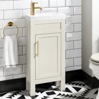 Bermuda Chalk White Cloakroom Basin Vanity 400mm - Brass Knurled Handles