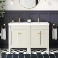 Bermuda Chalk White Double Basin Vanity 1200mm - Brushed Brass Accents