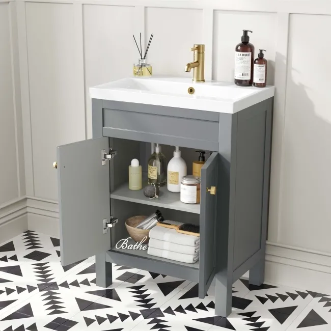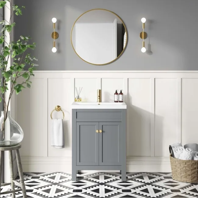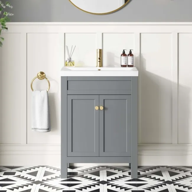 Bermuda Dove Grey Basin Vanity 600mm - Brushed Brass Accents