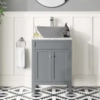 Bermuda Dove Grey Cabinet with Marble Top 600mm - Excludes Counter Top Basin