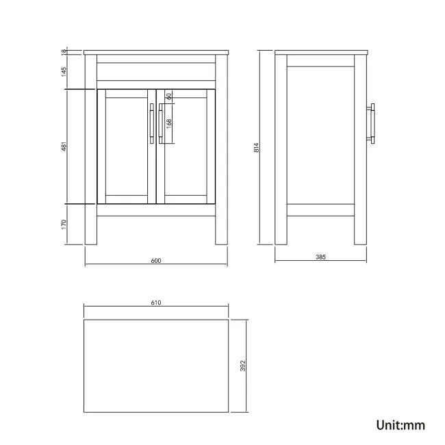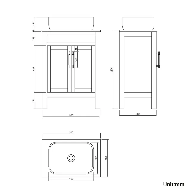 Bermuda Dove Grey Vanity with Curved Counter Top Basin 600mm - Brass Knurled Handles
