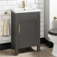 Bermuda Graphite Grey Basin Vanity 500mm - Brass Knurled Handles