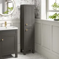 Bermuda Graphite Grey Floor Standing Tall Cabinet 1500x350mm - Brushed Brass Accents