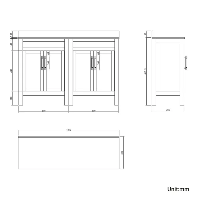 Bermuda Graphite Grey Vanity with Marble Top & Curved Counter Top Basin 1200mm - Brass Knurled Handles