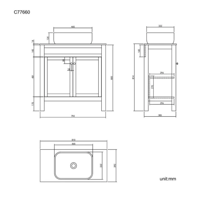Bermuda Graphite Grey Vanity with Marble Top & Curved Counter Top Basin 800mm