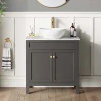Bermuda Graphite Grey Vanity with Marble Top & Oval Counter Top Basin 800mm - Brushed Brass Accents