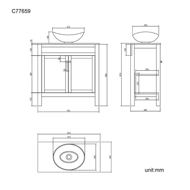 Bermuda Graphite Grey Vanity with Marble Top & Oval Counter Top Basin 800mm