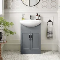 Capri Fog Grey Vanity with Semi Recessed Basin 550mm - Traditional Handles