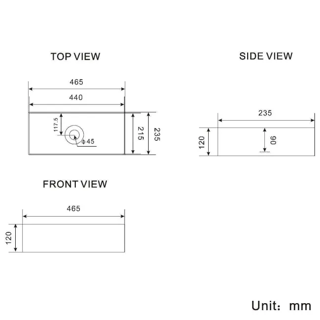 Cleveland Matt Black Rectangular Counter Top Basin 465mm