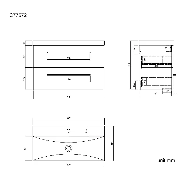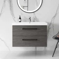 Elba Charcoal Elm Wall Hung Basin Drawer Vanity 800mm - Black Accents