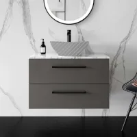 Elba Graphite Grey Wall Hung Drawer 800mm Excludes Counter Top Basin - Black Accents