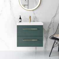 Elba Midnight Green Wall Hung Basin Drawer Vanity 600mm - Brushed Brass Accents