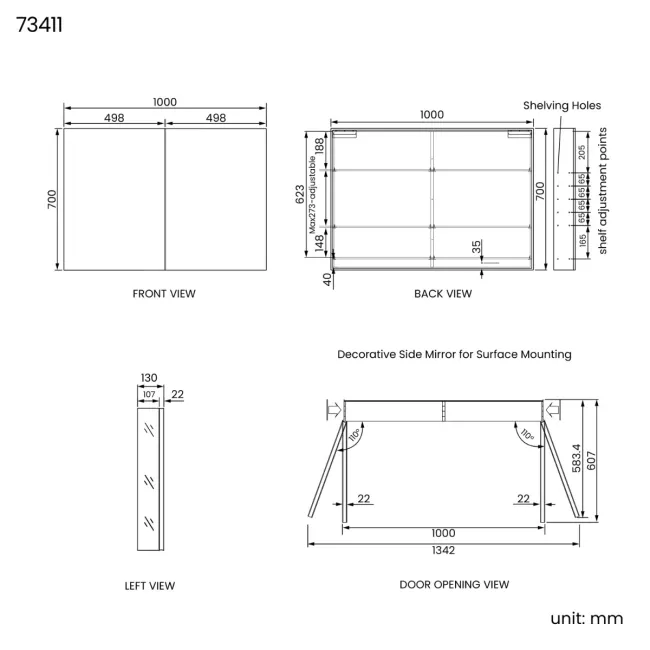 Esme Matt Black Recessed Mirror Cabinet 700x1000mm